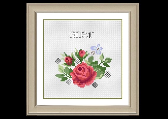 Rose Butterfly Counted Cross Stitch Pattern Modern Cross Etsy
