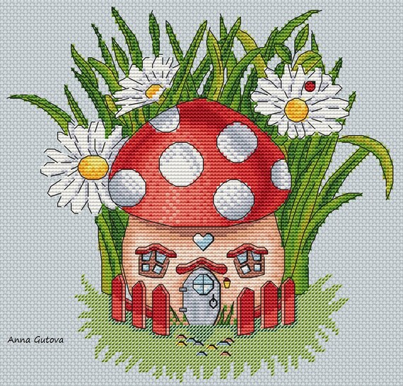 Cross Stitch Pattern Mushroom House Pdf Instant Etsy