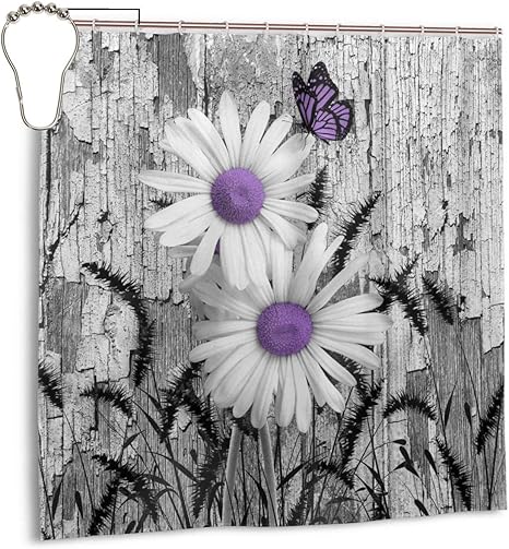 Amazon Com Amonee Yl Purple Gray White Daisy Flowers Butterfly Black Foxtail Grass Polyester Fabric Shower Curtain Sets With 10 Hooks Modern Bathroom Home Decor Water Repellent 60 72 Home Kitchen